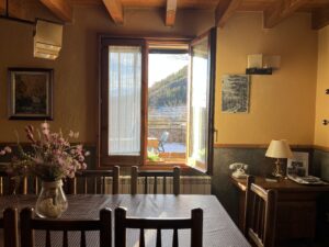 En el exterior cuenta con un patio independiente con barbacoa y zona de descanso, perfecto para disfrutar de comidas al aire libre y del entorno verde del Ripollès.